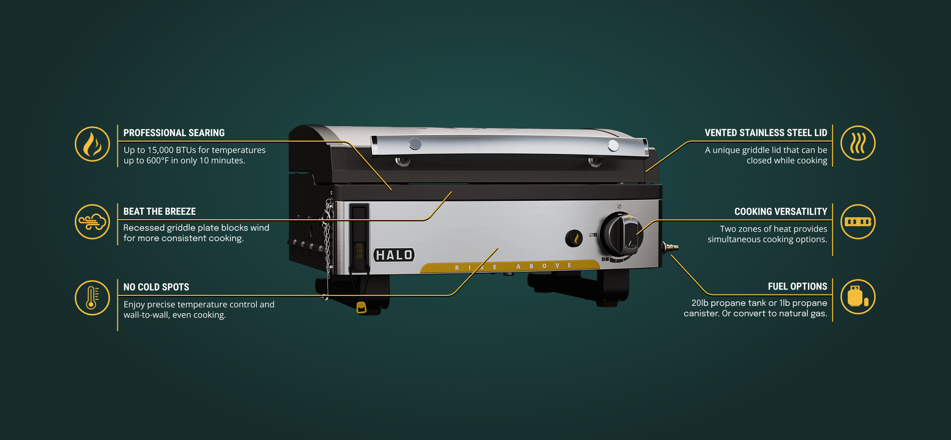The HALO Elite1B Outdoor Countertop Griddle delivers portable, pro-grade cooking with even heat and a versatile hinged lid.